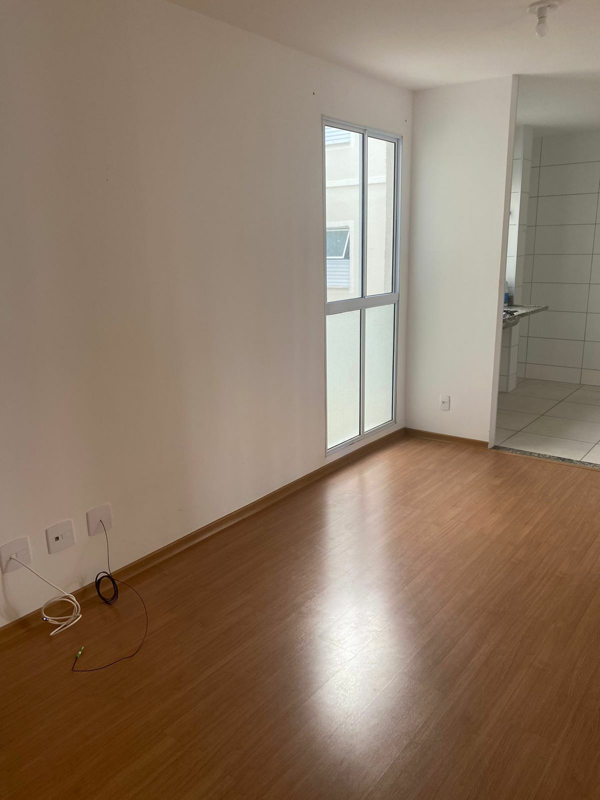 Área de 45,3m2, 2 quartos, sala, cozinha sem armários, banheiro com box e chuveiro elétrico e uma vaga de garagem. Valores de taxa de Condomínio, água e gás, incluso.