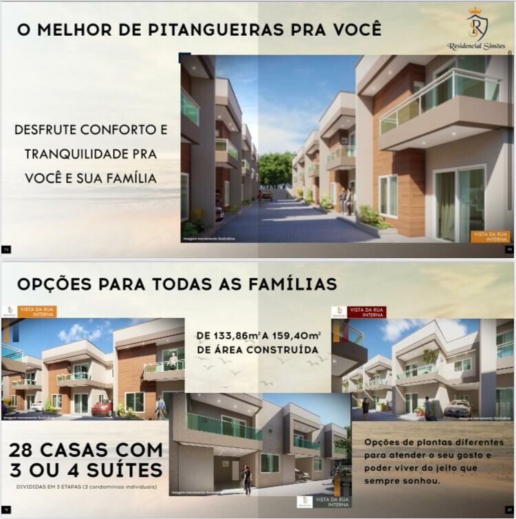 Opcoes para todas as familias 28 casas com 3 ou 4 suites de 133,86 m2 a 159,40 m2 de area construida.